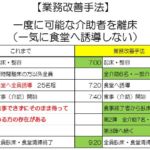 ・一度に離床、一斉に食堂へ誘導を、数人単位の離床、食堂へ誘導へ。